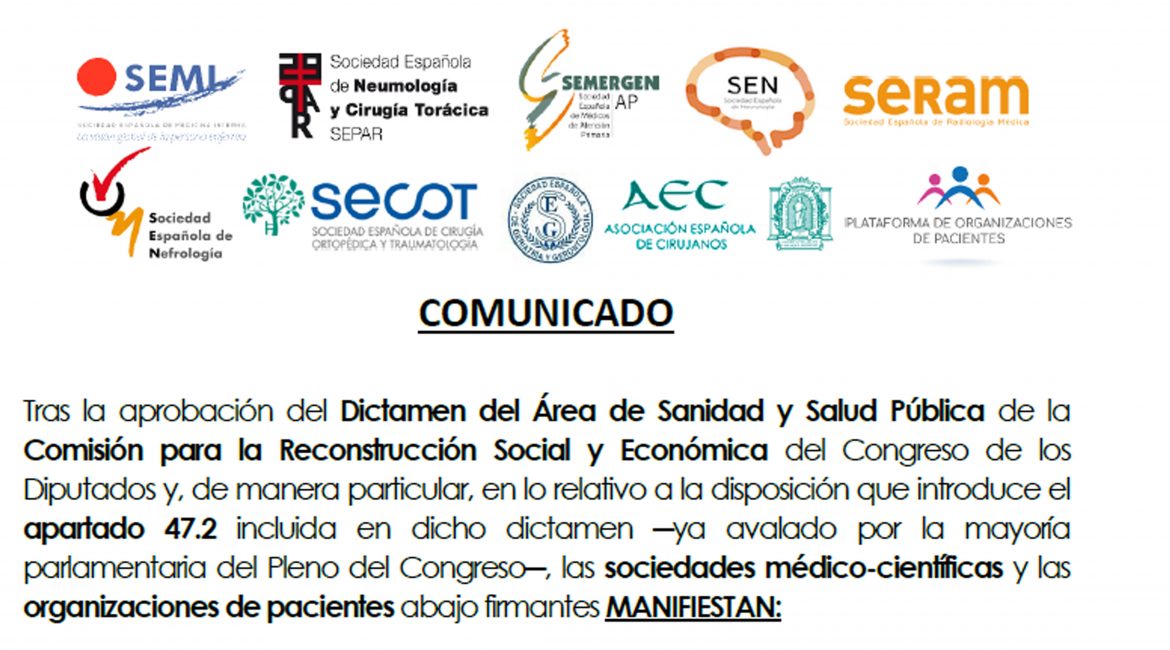 La SERAM participa en este comunicado conjunto firmado por 9 sociedades médico-científicas y la Plataforma de Organizaciones de Pacientes (POP), sobre el punto 47.2 del Dictamen del Área de Sanidad y Salud Pública de la Comisión para la Reconstrucción Social y Económica del Congreso de los Diputados. COMUNICADO Tras la aprobación del Dictamen del...