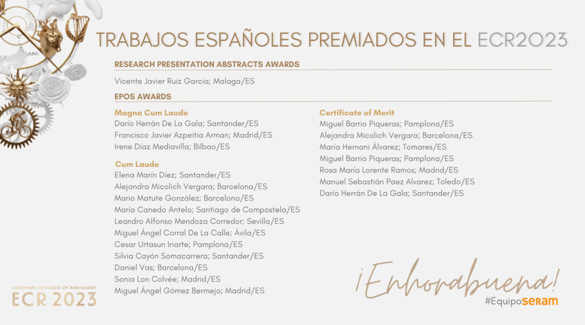 Ya es pública la lista de premios de investigación de la ECR 2023, donde 22 de los 61 premiados son españoles (36%), siendo la nacionalidad con mayor representación en el listado de los mejores resúmenes de investigación premiados este año. ¡Enhorabuena a todos los premiados! Consulta toda la información aquí.
