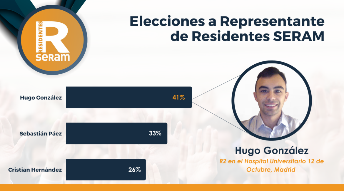 Tras una semana de votaciones ¡ya tenemos nuevo representante de residentes en la SERAM! Gracias a todos los candidatos y enhorabuena a Hugo González, R2 del Hospital 12 de Octubre de Madrid, como nuevo representante de residentes de la SERAM, ya que ha recibido el 41% de todos los votos....