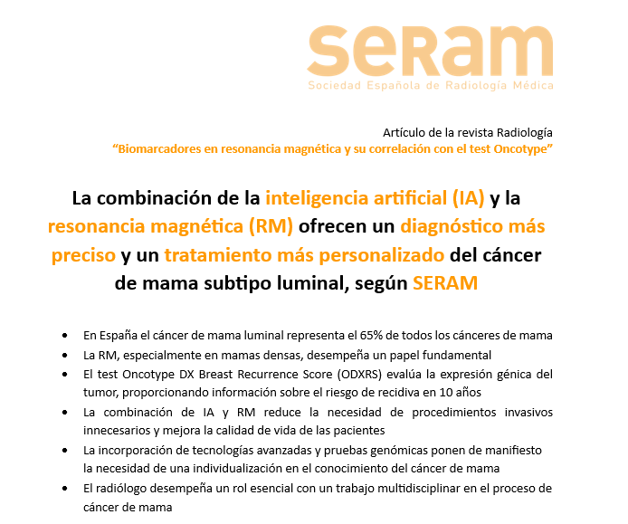 La combinación de inteligencia artificial (IA) y resonancia magnética (RM) ofrece un enfoque integral para la detección temprana y evaluación del cáncer de mama subtipo luminal. Esto puede traducirse en un diagnóstico más preciso y en un tratamiento más específico y personalizado, reduciendo la necesidad de procedimientos invasivos innecesarios y...