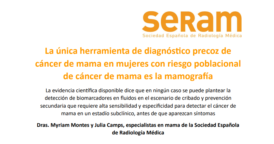 La evidencia científica disponible dice que en ningún caso se puede plantear la detección de biomarcadores en fluidos en el escenario de cribado y prevención secundaria que requiere alta sensibilidad y especificidad para detectar el cáncer de mama en un estadío subclínico, antes de que aparezcan síntomas Dras. Myriam Montes...