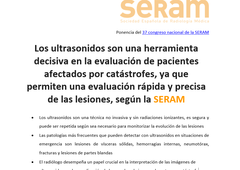 El uso de los ultrasonidos puede ser decisivo para los pacientes afectados por una catástrofe, ya que proporciona una evaluación rápida y precisa de las potenciales lesiones, lo que facilita un tratamiento adecuado y oportuno, señala la Dra. Andrea Alcala-Galiano, ponente del 37 congreso nacional de la Sociedad Española de...