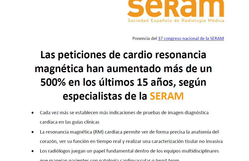 Las peticiones de cardio resonancia magnética han aumentado más de un 500% en los últimos 15 años, según especialistas de la SERAM