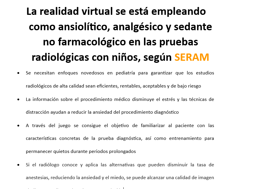 La realidad virtual se está empleando como ansiolítico, analgésico y sedante no farmacológico en las pruebas radiológicas con niños, según SERAM