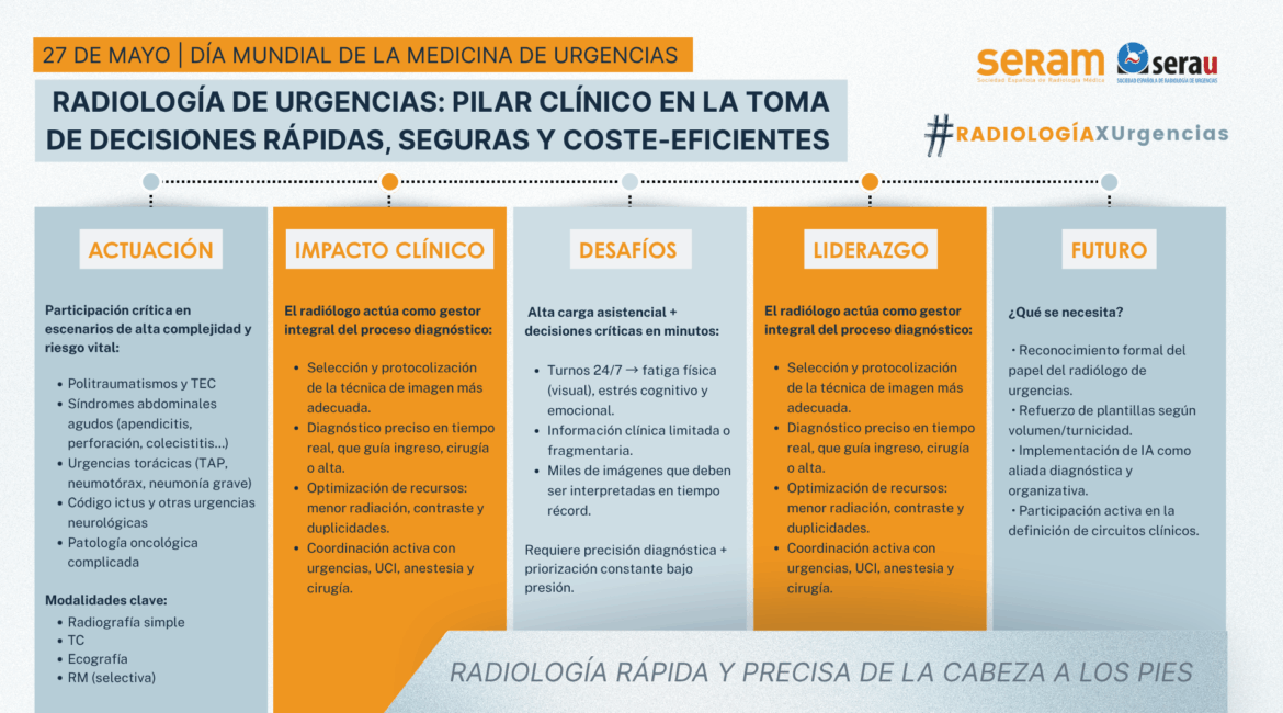 Con motivo del Día Mundial de la Medicina de Urgencias, desde la Sociedad Española de Radiología Médica (SERAM) y, su sección, la Sociedad Española de Radiología de Urgencias (SERAU) queremos poner en valor el papel esencial del radiólogo en los entornos de urgencia y emergencia. Su intervención es decisiva en...