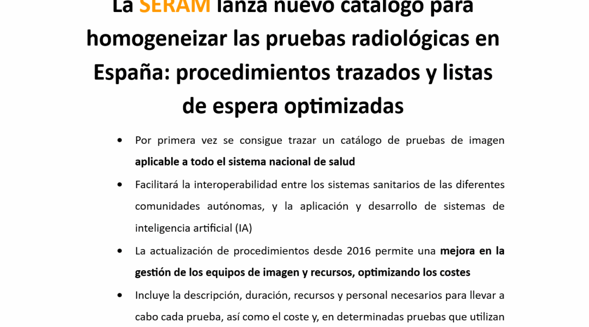 La SERAM lanza nuevo catálogo para homogeneizar las pruebas radiológicas en España: procedimientos trazados y listas de espera optimizadas