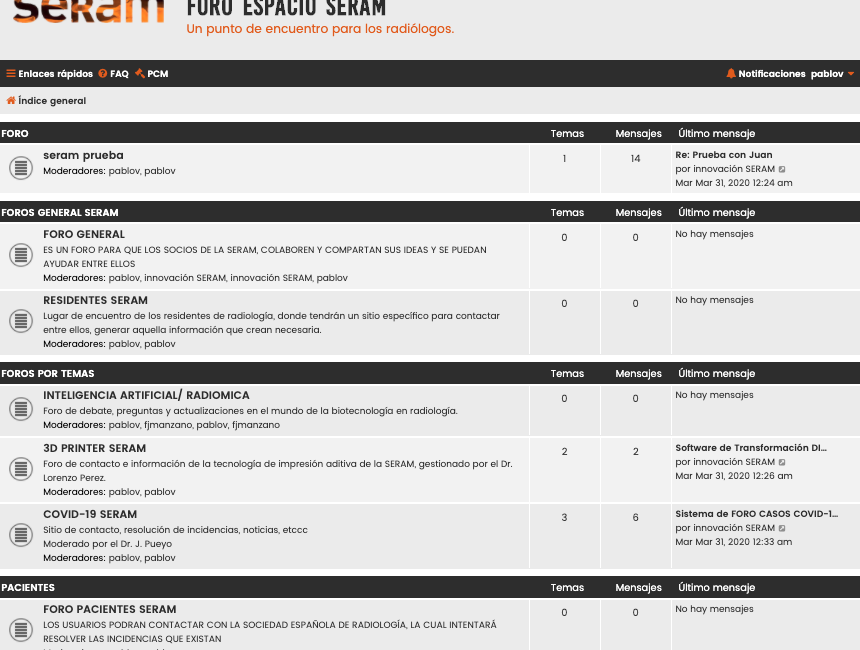 En un momento en que la información está cambiando mucho, con un gran uso de las redes sociales y nuevos retos, como la infección COVID-19, creemos fundamental disponer de una herramienta de intercambio de información fiable. Por eso, la SERAM ha creado un foro con los siguientes contenidos: foro general,...