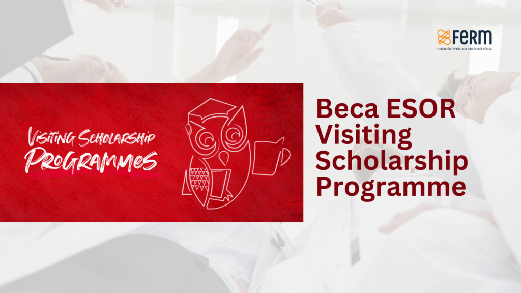 La Fundación Española de Radiología, en virtud del acuerdo establecido con la Sociedad Europea de Radiología (ESR) desde 2011, financia una beca anual adicional para el ESOR Visiting Scholarship Programme (Europe). Esta beca se suma a las que convoca anualmente la European School of Radiology (ESOR).