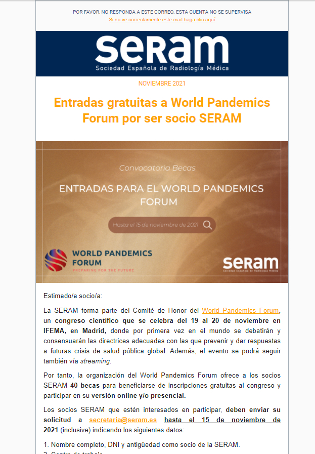 Entradas gratuitas a World Pandemics Forum por ser socio SERAM