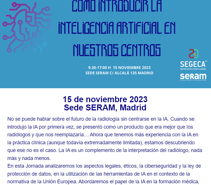 Como introducir la inteligencia artificial en nuestros centros (15 de noviembre en la sede de la SERAM) ¡Inscríbete!