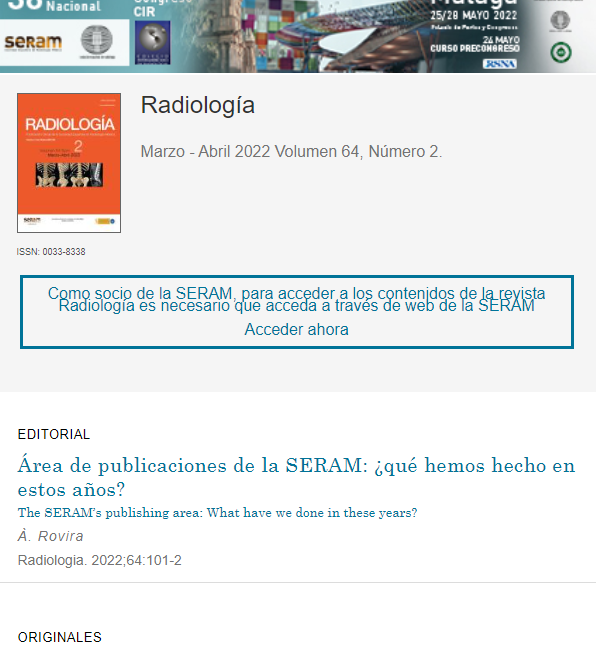 Nuevo número de la Revista Radiología. Volumen 64, número 2