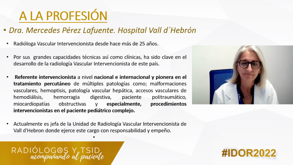 Premios de la profesión a la Dra. Mercedes Pérez Lafuente, jefa de la Unidad de Radiología Vascular Intervencionista de Vall d’Hebron en Barcelona.