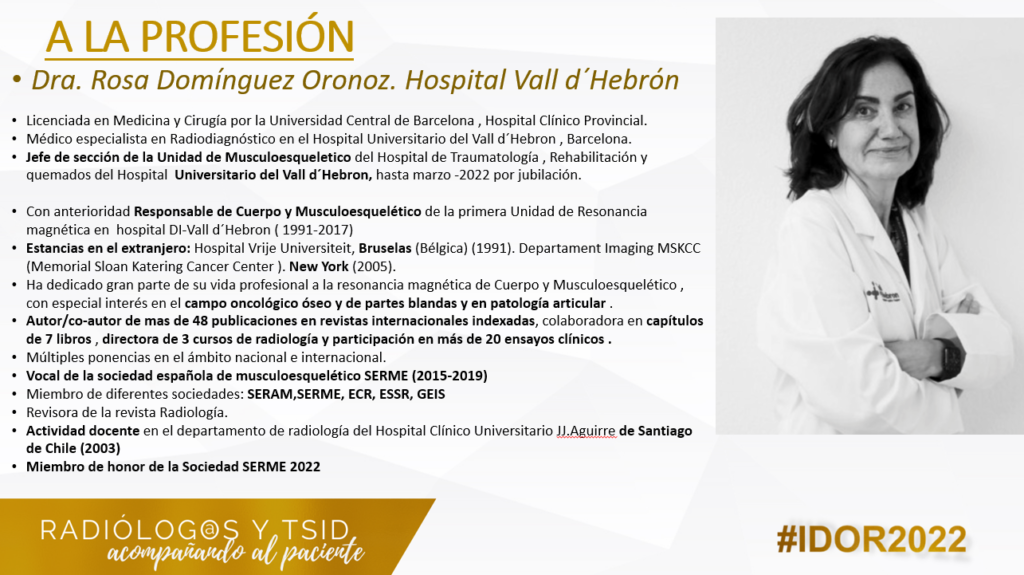Premios de la profesión a la Dra. Rosa Domínguez Oronoz, jefa de Sección de Músculo-esquelético del Hospital Valle Hebrón en Barcelona.