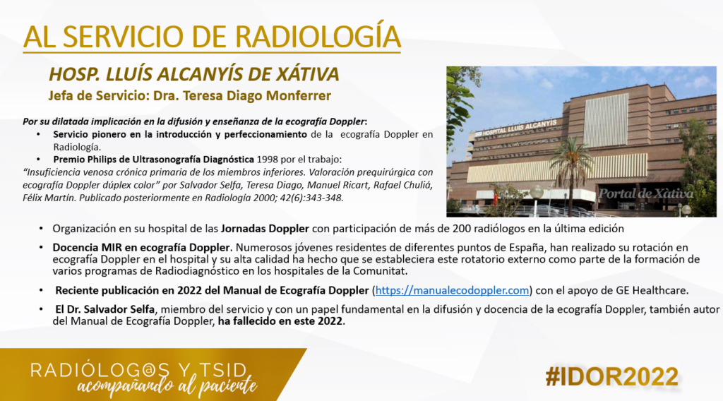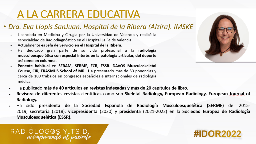 Premio a la carrera educativa para la Dra. Eva Llopis San Juan, jefa de Servicio de Radiología en el Hospital de la Ribera de Alcira en Valencia.