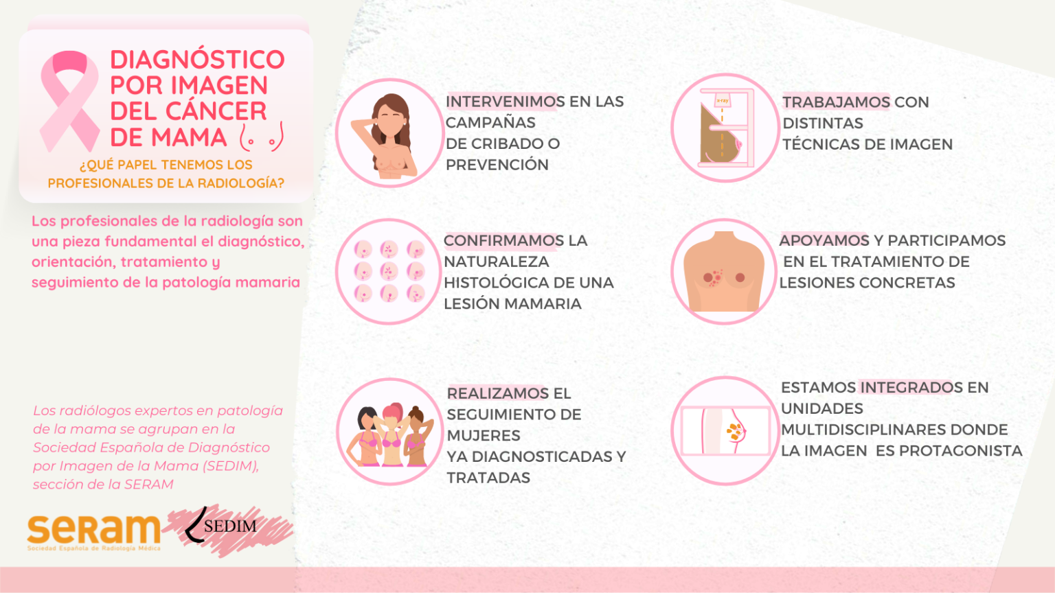 Los radiólogos expertos en patología de la mama se agrupan en la Sociedad Española de Diagnóstico por Imagen de la Mama (SEDIM), sección de la SERAM.