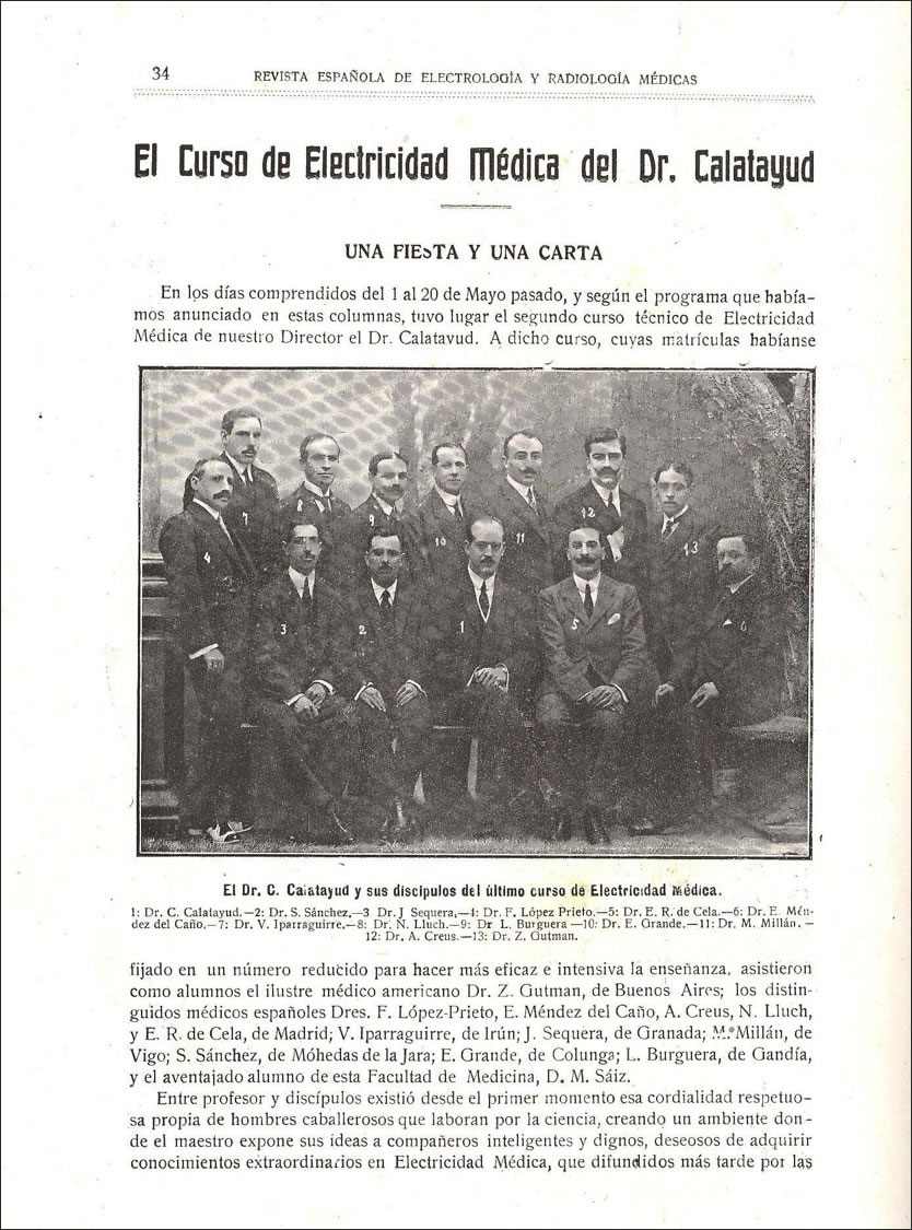 Curso electricidad médica del Dr. Calatayud en 1917 (colaboración del Dr. Enrique Millán)