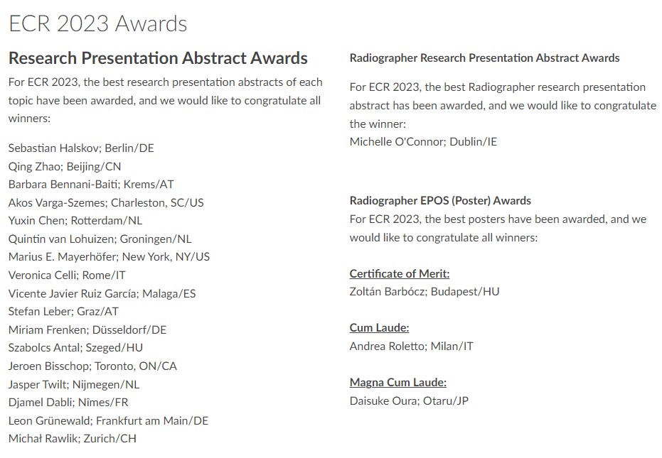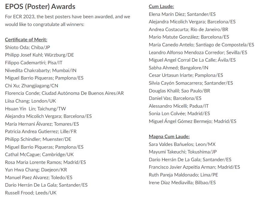 Ya es pública la lista de premios de investigación de la ECR 2023, donde 22 de los 61 premiados son españoles (36%), siendo la nacionalidad con mayor representación en el listado de los mejores resúmenes de investigación premiados este año.