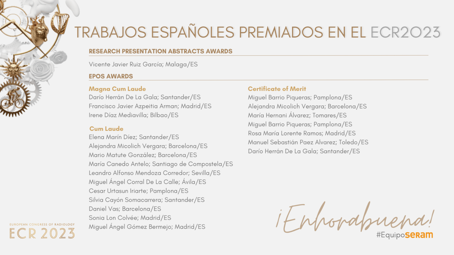 El 36% de los premiados en los trabajos de la ECR 2023 son españoles y miembros de la SERAM