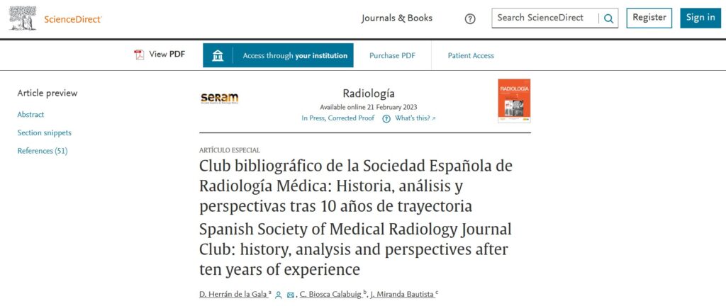 En 2013 se fundó el Club Bibliográfico (CB) de la Sociedad Española de Radiología Médica (SERAM) con el objetivo de fomentar la adquisición de habilidades no interpretativas y la formación en editorialismo durante el periodo de residencia. Y tras 10 años de trayectoria han formado parte del CB SERAM más de 137 revisores de 54 hospitales diferentes. En este tiempo, el número de revisores, publicaciones y visitas a nuestro sitio web han aumentado progresivamente. Toda la información se recoge en este artículo: