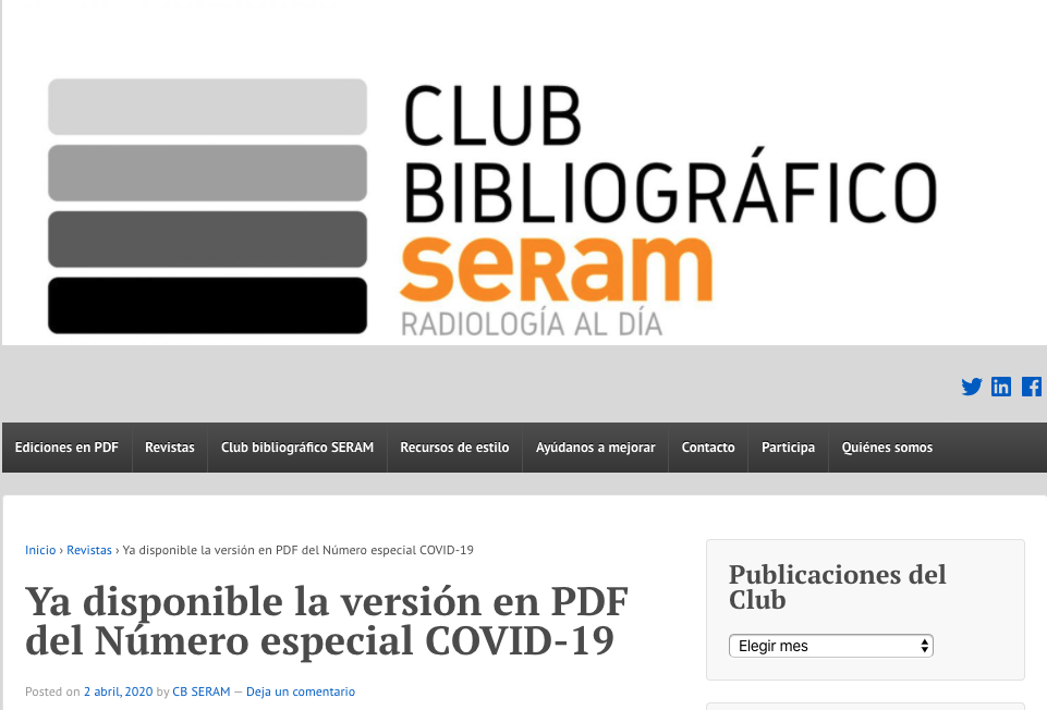 El club biliográfico SERAM acaba de publicar el número de abril en el que hacen un repaso de los artículos más relevantes sobre la infección COVID-19.