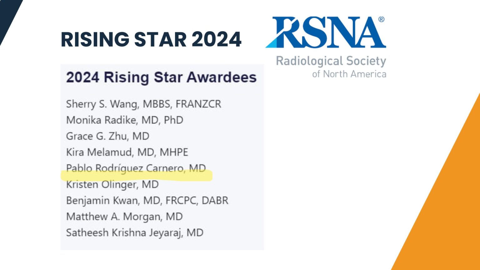El Dr. Pablo Rodríguez Carnero premio Rising Star 2024 de la RSNA