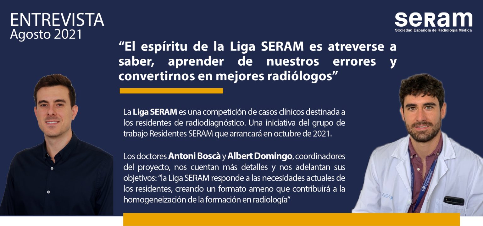 Los doctores Antoni Boscà y Albert Domingo, coordinadores del proyecto, nos cuentan más detalles y nos adelantan sus objetivos: “la Liga SERAM responde a las necesidades actuales de los residentes, creando un formato ameno que contribuirá a la homogeneización de la formación en radiología”