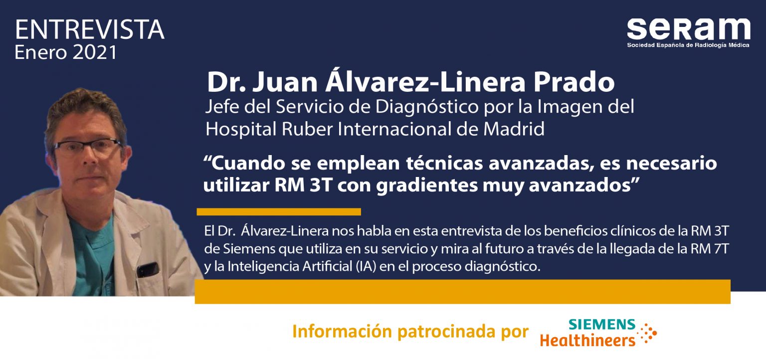 El Dr. Juan Álvarez-Linera Prado, jefe del Servicio de Diagnóstico por la Imagen del Hospital Universitario Ruber Internacional de Madrid, nos habla en esta entrevista de los benefi­cios clínicos de la RM 3 Teslas de Siemens que utiliza en su servicio, de los nuevos protocolos en neuroimagen y hace una mirada al futuro a través de la llegada de la RM 7T y la Inteligencia Arti­cial (IA) en el proceso diagnóstico.