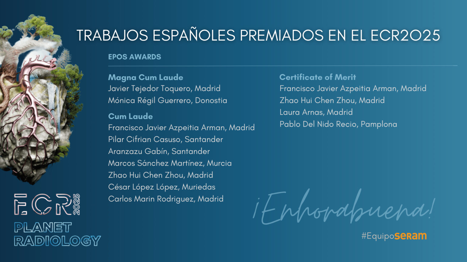 Me siento profundamente agradecido por este reconocimiento, que ha sido una inesperada pero maravillosa sorpresa. En un congreso de tal envergadura como es la ECR, donde se presentan trabajos de tan alta calidad, es un honor ver nuestro esfuerzo destacado.
