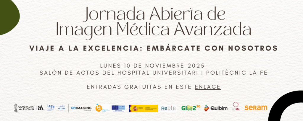 Es nombre del Área Clínica de Imagen Médica del Hospital Universitario y Politécnico La Fe quiero invitaros a la XII edición de la Jornada Abierta de Imagen Médica Actualizada (JAIMA) “Viaje a la Excelencia: Embárcate con Nosotros” que tendrá lugar el lunes 10 de noviembre de 2025 en el Salón de Actos de nuestro hospital. Este año compartimos cómo trabajamos, formamos e investigamos en Radiología y Medicina Nuclear.