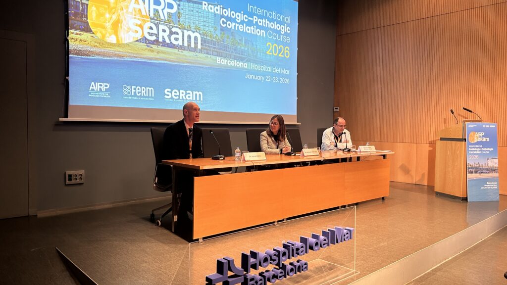 La inauguración ha estado a cargo de la Dra. María Navallas, responsable científico de la SERAM, junto al Dr. Jamie Marko como representante de la American Institute for Radiologic Pathology (AIRP) y el Dr. Jose María Maiques Llacer, jefe de servicio de Radiología del Hospital del Mar donde ha tenido lugar el evento.
