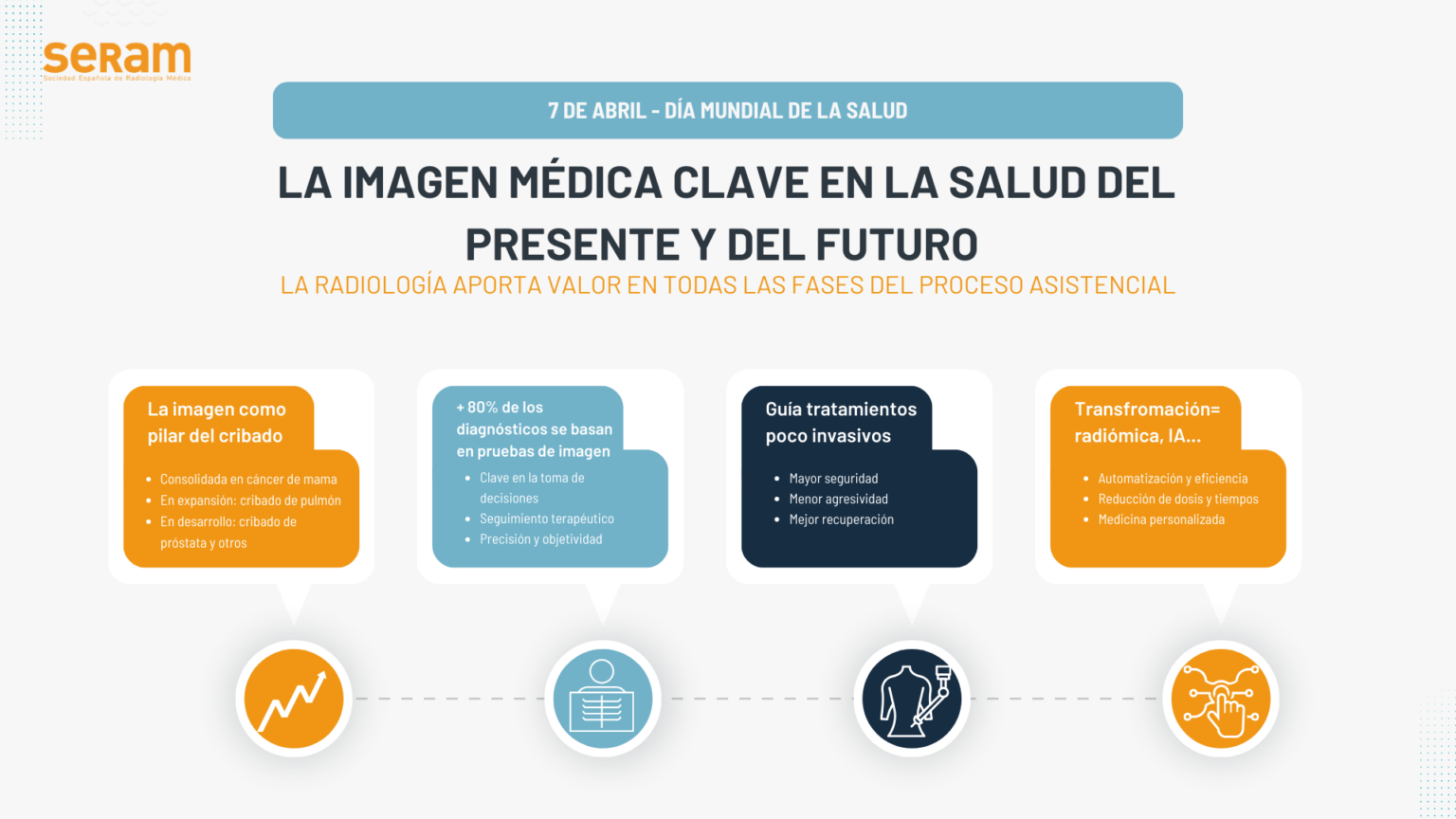 La imagen médica es cada vez más necesaria y aporta mayor valor en todo el proceso asistencial, según la Sociedad Española de Radiología Médica (SERAM). En los últimos años existe un aumento muy significativo de la demanda de pruebas de imagen, dado que cada vez son más necesarias para los cribados, para el diagnóstico y seguimiento de enfermedades y como guía de tratamientos mínimamente invasivos.