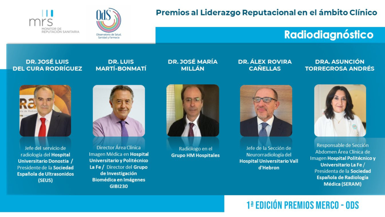 Queremos felicitar a los cuatro miembros de la SERAM por su nominación a los premios “al liderazgo reputacional en el ámbito clínico” de la especialidad de Radiodiagnóstico:
