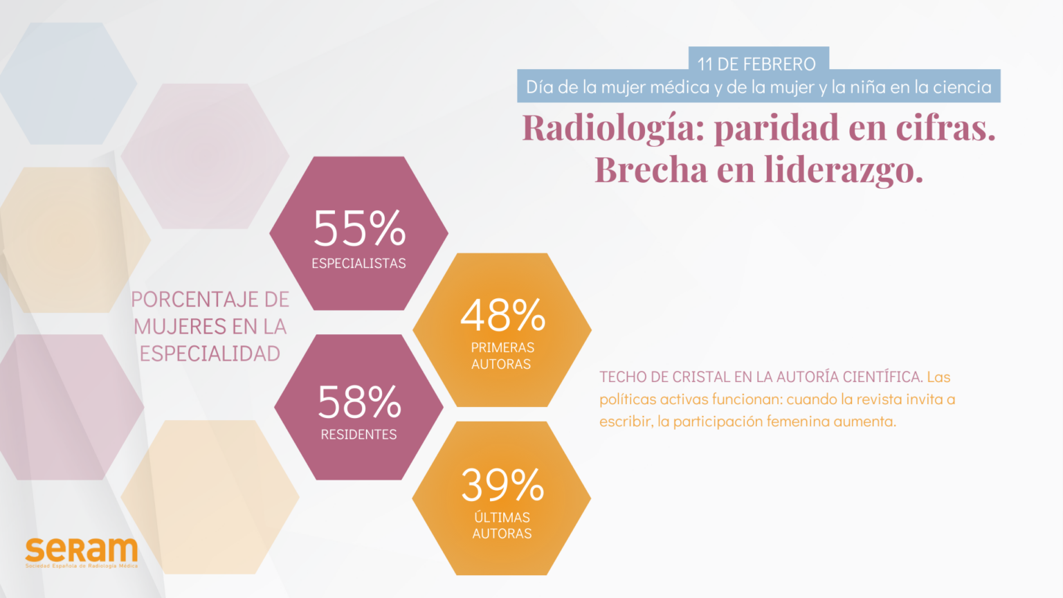 Con motivo del Día Mundial de la Mujer Médica y Día Internacional de la Mujer y la Niña en la Ciencia, desde la Sociedad Española de Radiología Médica (SERAM) se quiere poner de manifiesto que la Radiología española avanza hacia la paridad en la producción científica, pero mantiene un “techo de cristal” en el liderazgo científico, según expertos de la SERAM, como la Dra. Natalia Arenas Rivera, autora del artículo de la revista Radiología “Representación de género en la autoría de los artículos publicados en la revista Radiología: un análisis bibliométrico de diez años” que analiza la representación femenina en la autoría científica en radiología durante la última década.