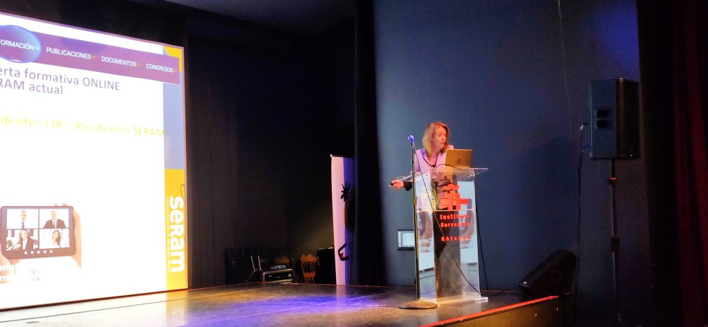 La presidenta de la SERAM comenzó el evento presentando las novedades de la sociedad, entre las que destacó la nueva página web, más accesible e intuitiva: “se ha realizado una fuerte apuesta por uno de nuestros principales canales de comunicación”.