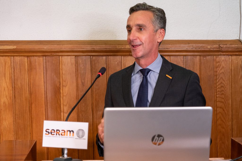 Finalmente, el Dr. Alberto Mingo, radiólogo intervencionista en el Hospital de La Princesa de Madrid, puso de manifiesto la utilidad y los beneficios de la Radiología Intervencionista con un ejemplo muy personal. Tras un accidente durante una competición hípica en 2019, con la pelvis rota, fue trasladado en helicóptero al Hospital La Paz de Madrid: “Nada más llegar al hospital y con una Tomografía Computarizada (TC) inicial en el que se vieron múltiples puntos de hemorragia activa e intensa, me realizaron una embolización pélvica con micro catéteres de forma ágil y precisa”, explicó. En línea con resto de radiólogos intervencionistas que participaron en el evento de SERAM, el doctor aprovechó para recalcar la importancia de disponer de una Unidad Vascular Intervencionista en los hospitales españoles debido a su utilidad vital en situaciones de emergencia: “A mí me salvaron la vida en el Hospital La Paz”.