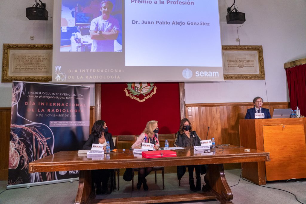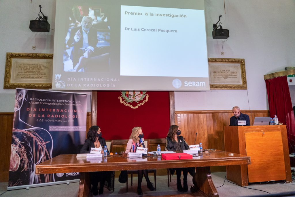 Madrid, 12 de noviembre de 2021. La Sociedad Española de Radiología Médica (SERAM) ha reconocido con los Premios Radiología 2021 el trabajo de los profesionales que se distinguen en el ejercicio de esta especialidad o el apoyo a misma. Lo ha hecho en un acto institucional celebrado ayer en el Ilustre Colegio Oficial de Médicos de Madrid (ICOMEM) en conmemoración del Día Internacional de la Radiología, efeméride que tuvo lugar el 8 de noviembre.
