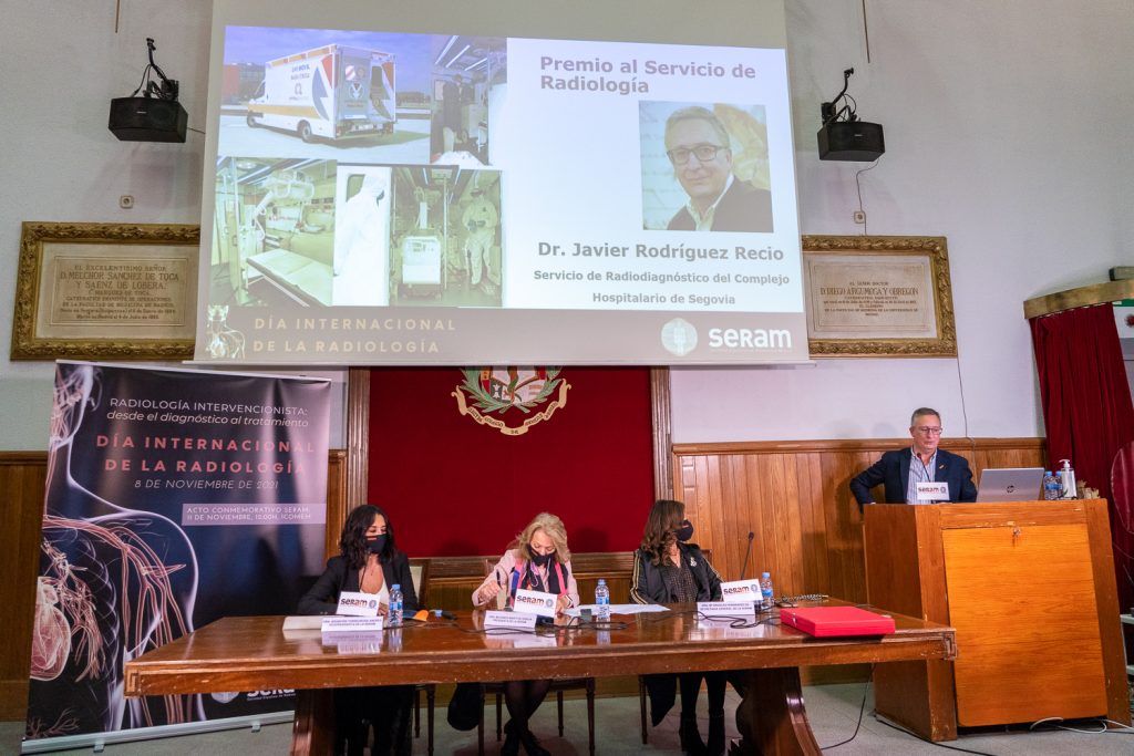 La SERAM ha reconocido con el Premio al Servicio de Radiología del Hospital Complejo Hospitalario de Segovia por la innovadora iniciativa que tuvo en el punto más álgido de la pandemia por COVID-19. Tal y como explicó durante el acto el jefe de servicio del hospital, el Dr. Javier Rodríguez Recio, dotaron ambulancias bariátricas de equipos de rayos x para poder transportarlos a todas las zonas de la provincia. De esta forma, podían realizar radiografías de tórax (único elemento de diagnóstico en aquel momento) a los pacientes para evaluar la gravedad de la infección y evitar el colapso hospitalario. “En este premio representamos a todos los servicios de Radiología de España y a todos sus profesionales, por su gran trabajo y dedicación a los pacientes durante la pandemia”, aseguró el Dr. Rodríguez Recio durante su intervención.