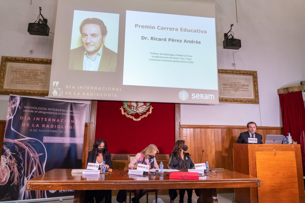 La sociedad también otorgó ayer el Premio a la Carrera Educativa al Dr. Ricard Pérez Andrés, profesor de Radiología en la Universidad Autónoma de Barcelona y uno de los pioneros en la organización de los congresos de Radiología para estudiantes de Medicina: “Muchos radiólogos descubrieron su vocación gracias a él”, afirmó presidenta de la SERAM.