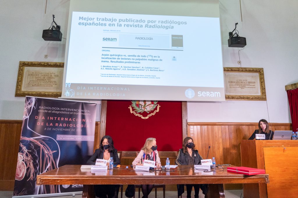 Por su parte, la Fundación Española de Radiología hizo entrega del premio al mejor artículo publicado por radiólogos en la revista oficial de la SERAM, Radiología, al trabajo “Arpón vs. semilla de iodo en la localización de lesiones no palpables malignas de mama”, realizado por el Servicio de Radiología del Hospital Virgen de las Nieves de Granada. Su autora principal, la Dra. Inmaculada Mendoza Arnau, aseguró que este proyecto continúa con plena vigencia en el hospital.