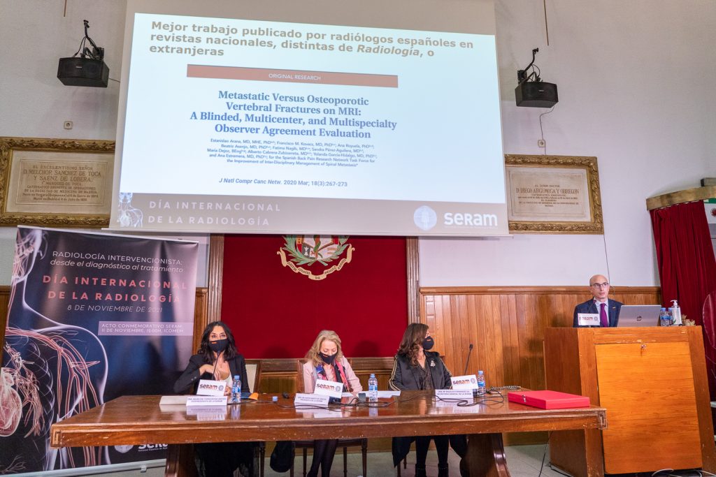 En la categoría de mejor artículo publicado por radiólogos españoles en revistas nacionales distintas a Radiología o extranjeras, el premio fue para el artículo “Metastatic Versus Osteoporotic Vertebral Fractures on MRI: A Blinded, Multicenter, and Multispecialty Observer Agreement Evaluation” cuyo autor principal es el Dr. Estanislao Arana Fernández de Moya.