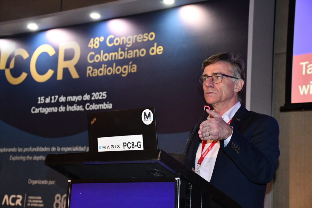 La Dra. comenta que “fue un honor representar a la SERAM en el Congreso Colombiano de Radiología CCR 2025 en Cartagena de Indias. Quiero dar las gracias a la Asociación Colombiana de Radiología (ACR), a su presidente Dr. Michel Hernández y al Dr. Federico Lubinus, coordinador científico del congreso, por su excelente organización y hospitalidad”.