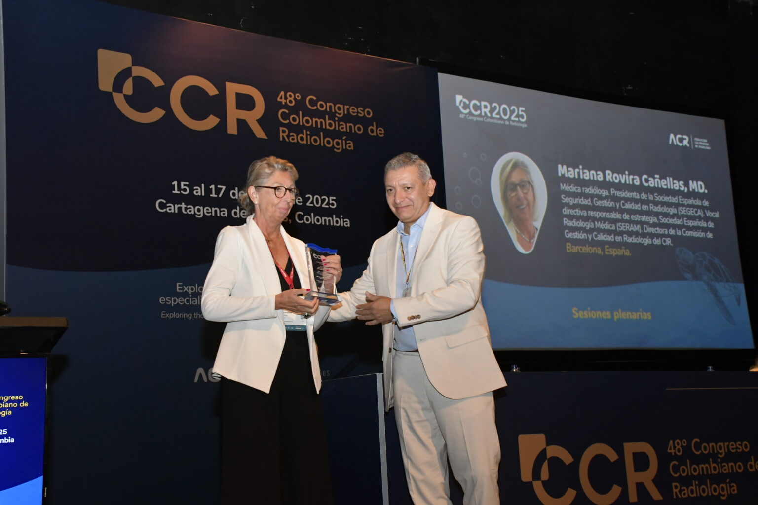 La Dra. comenta que “fue un honor representar a la SERAM en el Congreso Colombiano de Radiología CCR 2025 en Cartagena de Indias. Quiero dar las gracias a la Asociación Colombiana de Radiología (ACR), a su presidente Dr. Michel Hernández y al Dr. Federico Lubinus, coordinador científico del congreso, por su excelente organización y hospitalidad”.