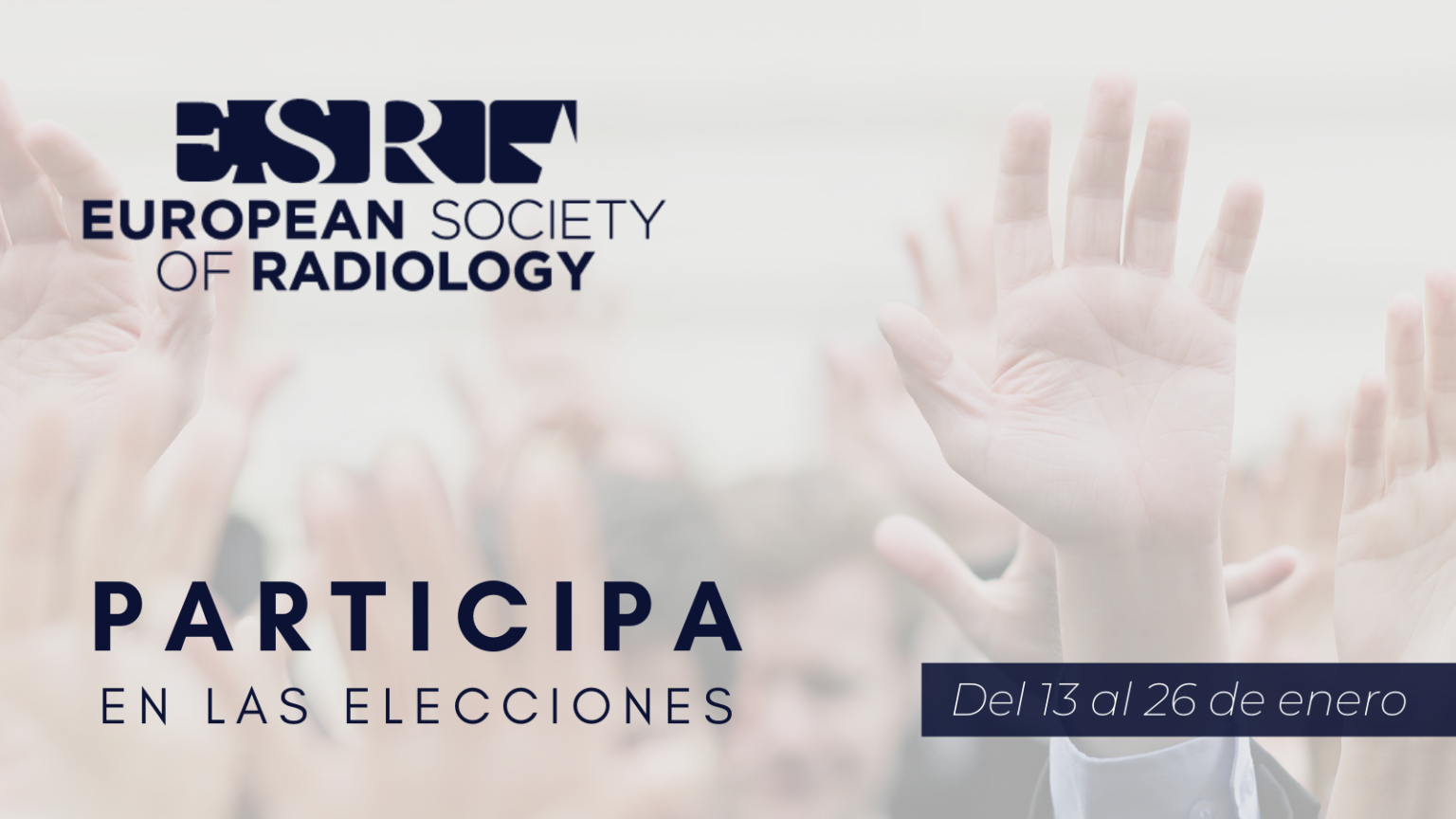 Del 13 a 26 de enero de 2022 se celebran las elecciones a Vicepresidente Segundo, Chair del Comité de Publicaciones y Chair del Comité de Sociedades nacionales de la Sociedad Europea de Radiología (ESR).