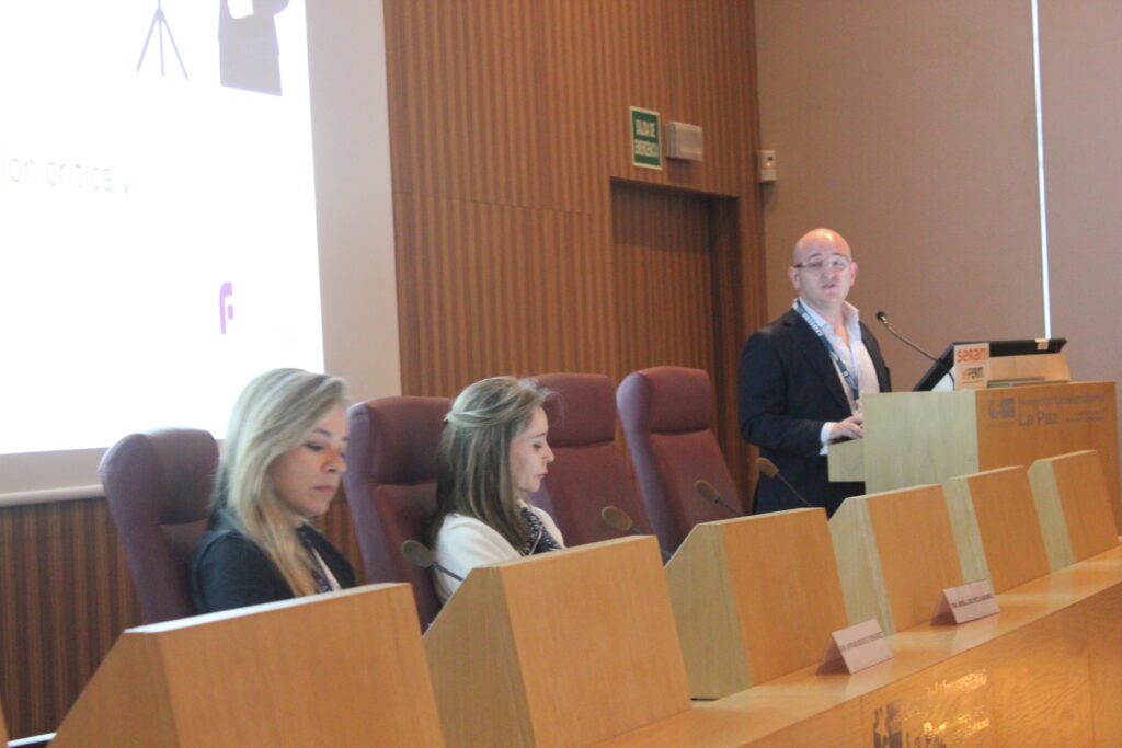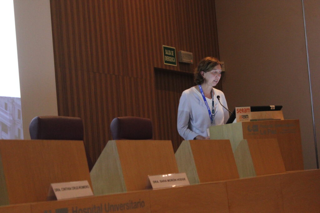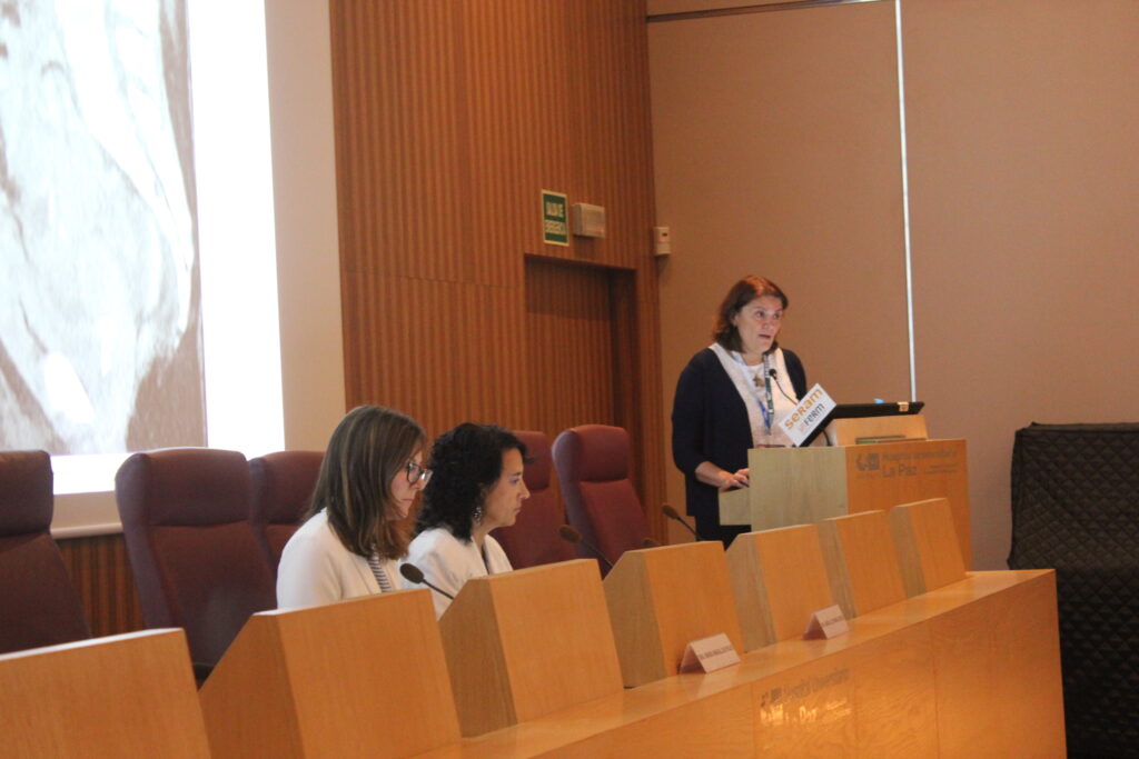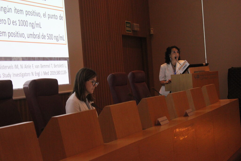 La Dra. Mari Luz Parra señaló que la ecografía y la resonancia magnética son las técnicas de imagen de elección durante el embarazo y se centró en la enfermedad tromboembólica venosa (ETEV) porque es una de las principales causas de morbilidad y mortalidad materna durante el embarazo y hasta 6 semanas postparto. La tasa de ETEV se calcula en 1,72/ 1.000 nacimientos, siendo más frecuentes las trombosis venosas profundas (TVP) con una distribución similar en cada trimestre. Los embolismos pulmonares (EP) ocurren con más frecuencia en el puerperio. En la sospecha de TEP podemos aconseja utilizar gammagrafia o angioTC de arterias pulmonares en función de la disponibilidad del centro, siempre con protocolos que consigan una reducción significativa de la dosis.