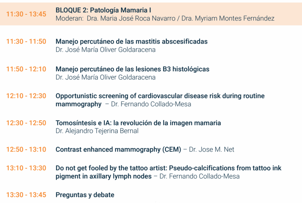 En el turno del Dr. Fernando Collado se ha comentado que la ateroesclerosis mamaria se asocia dos veces más riesgo de enfermedad ateroesclerosis coronaria, si las calcificaciones vasculares mamarias son moderadas o severas el riesgo de enfermedad coronaria ateroesclerotica se multiplica por 4.