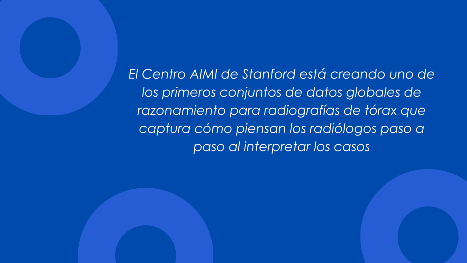 El Centro AIMI de Stanford está creando uno de los primeros conjuntos de datos globales de razonamiento para radiografías de tórax que captura cómo piensan los radiólogos paso a paso al interpretar los casos. Este conjunto de datos se publicará y se utilizará para entrenar modelos de IA, de modo que su razonamiento se ajuste más a la lógica diagnóstica experta, en lugar de explicaciones inventadas o genéricas.