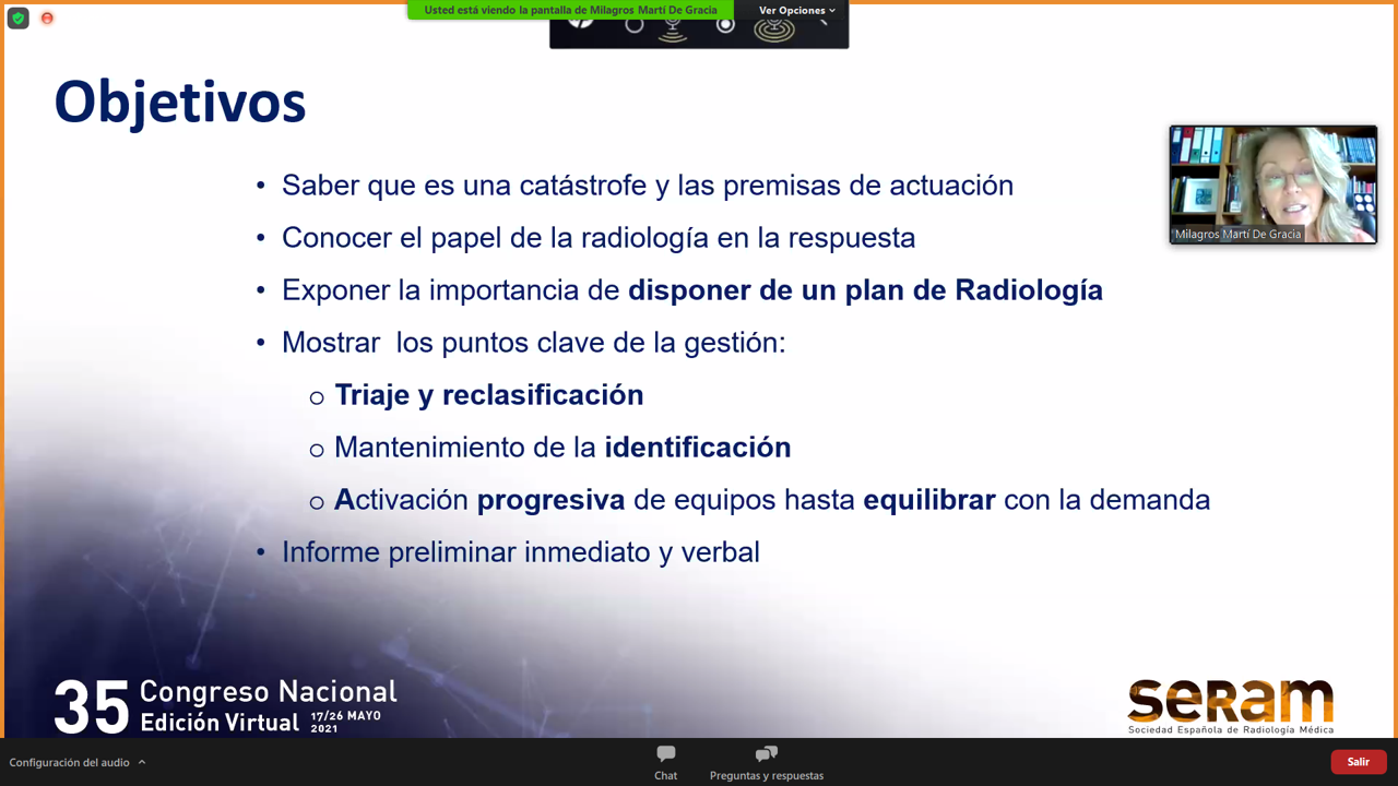 La Dra. Martí, que vivió los ataques terroristas del 11M en Madrid en 2004 desde la sección de radiología de urgencias de su hospital y ha coordinado también esta sección durante la pandemia COVID-19, asegura que “la posibilidad de un incidente con múltiples víctimas traumatizadas, quemadas, contaminadas, intoxicadas o infectadas, es una amenaza para la que el servicio de radiología ha de estar preparado. Nunca como ahora ha sido tan importante estarlo”.