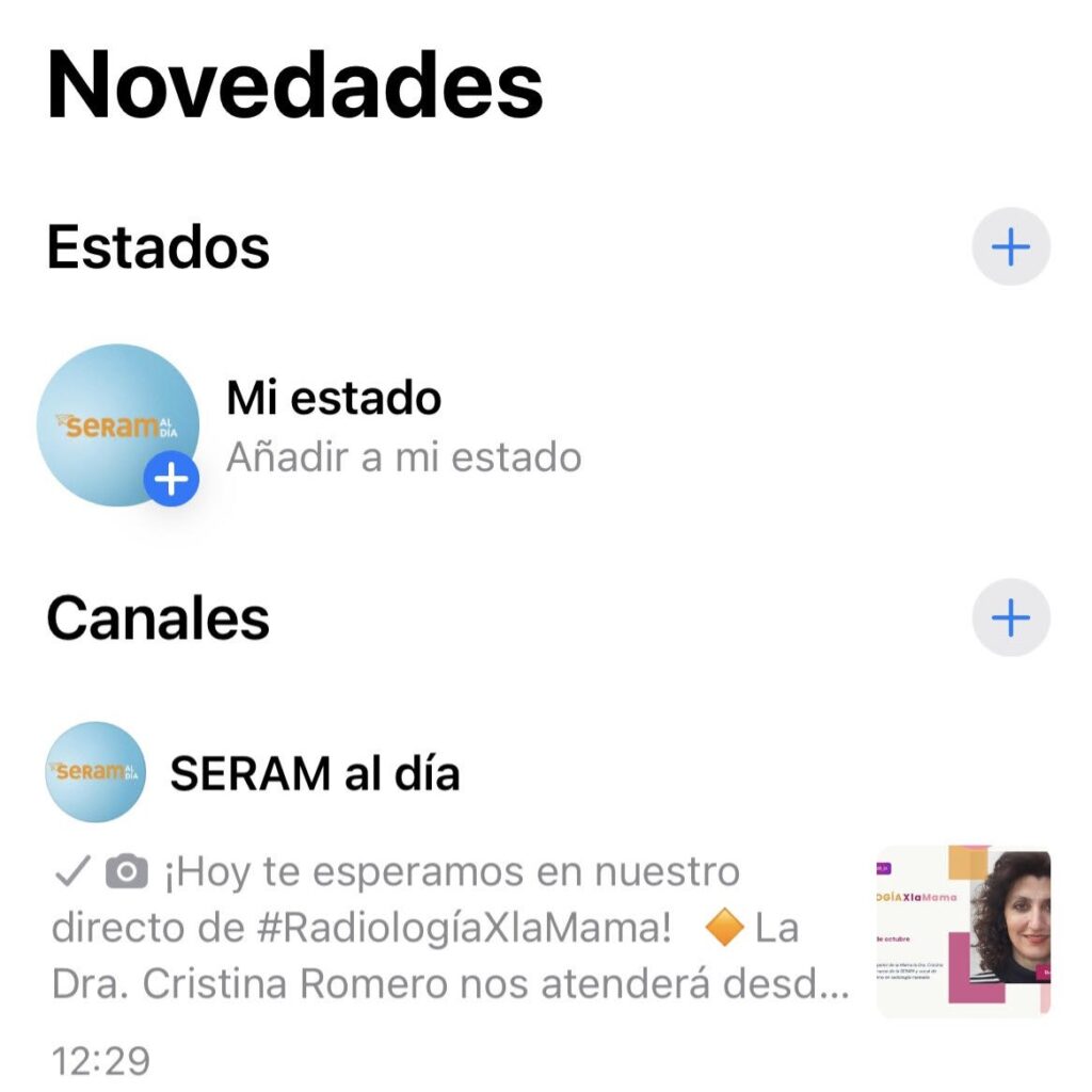 Se trata de un canal unidireccional en el que solo la SERAM escribe y no aparece la información de los usuarios. De hecho, ni siquiera aparece junto al resto de chats sino que se encuentra junto a los estados de Whatsapp.