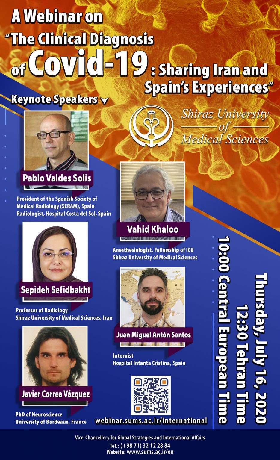 El presidente de la SERAM, el Dr. Pablo Valdés Solís, participa el próximo jueves 16 de julio (10:00h. CET) en el webinar “The clinical diagnosis of COVID-19: sharing Iran and Spain’s experience” organizado por la Universidad de Ciencias Médicas de Shiraz (SUMS), la más importante de Irán.